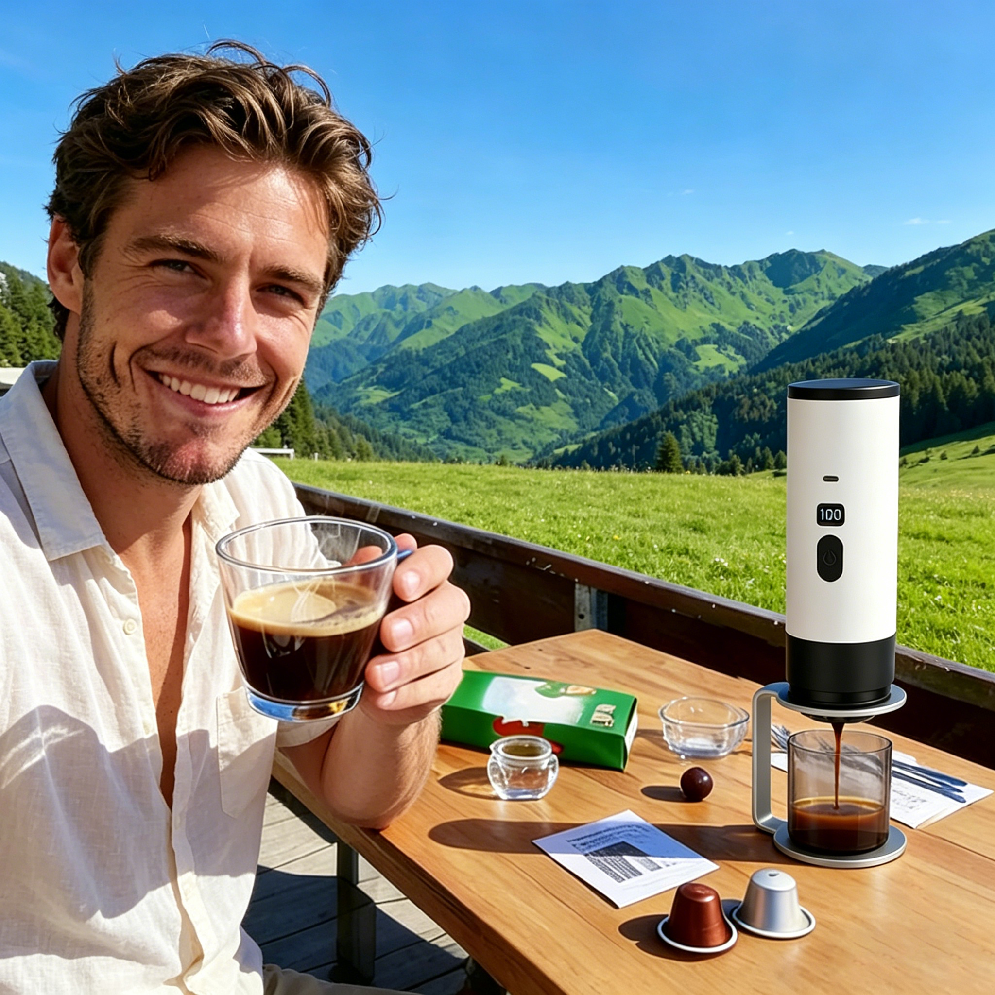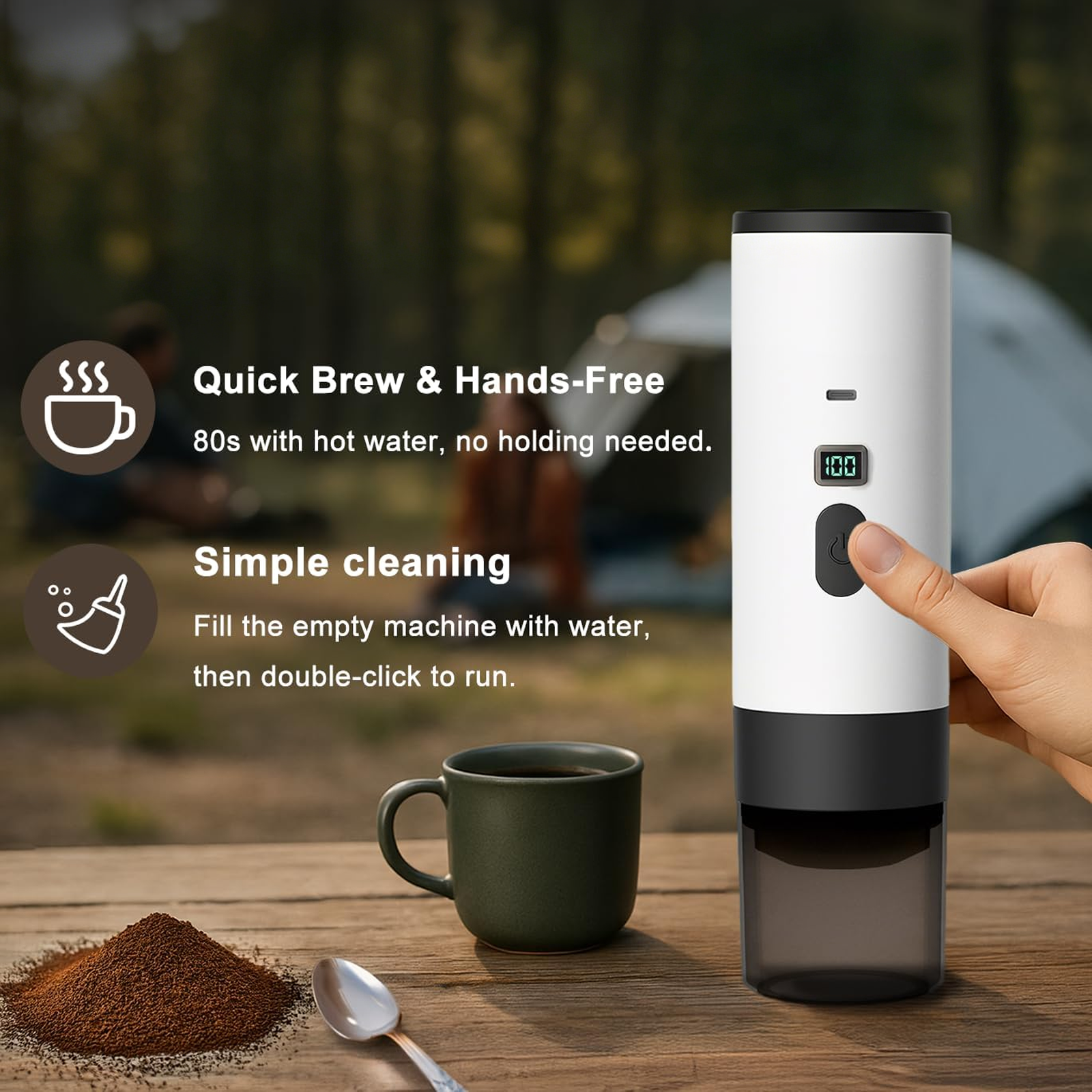 Enjoy hot coffee anytime, anywhere—whether commuting, camping, traveling, or at the office. Multi-functional, compatible with ground coffee and capsules, and high-pressure extraction delivers rich, smooth flavor. Compact, portable, and easy to clean, making every coffee moment simple and free.