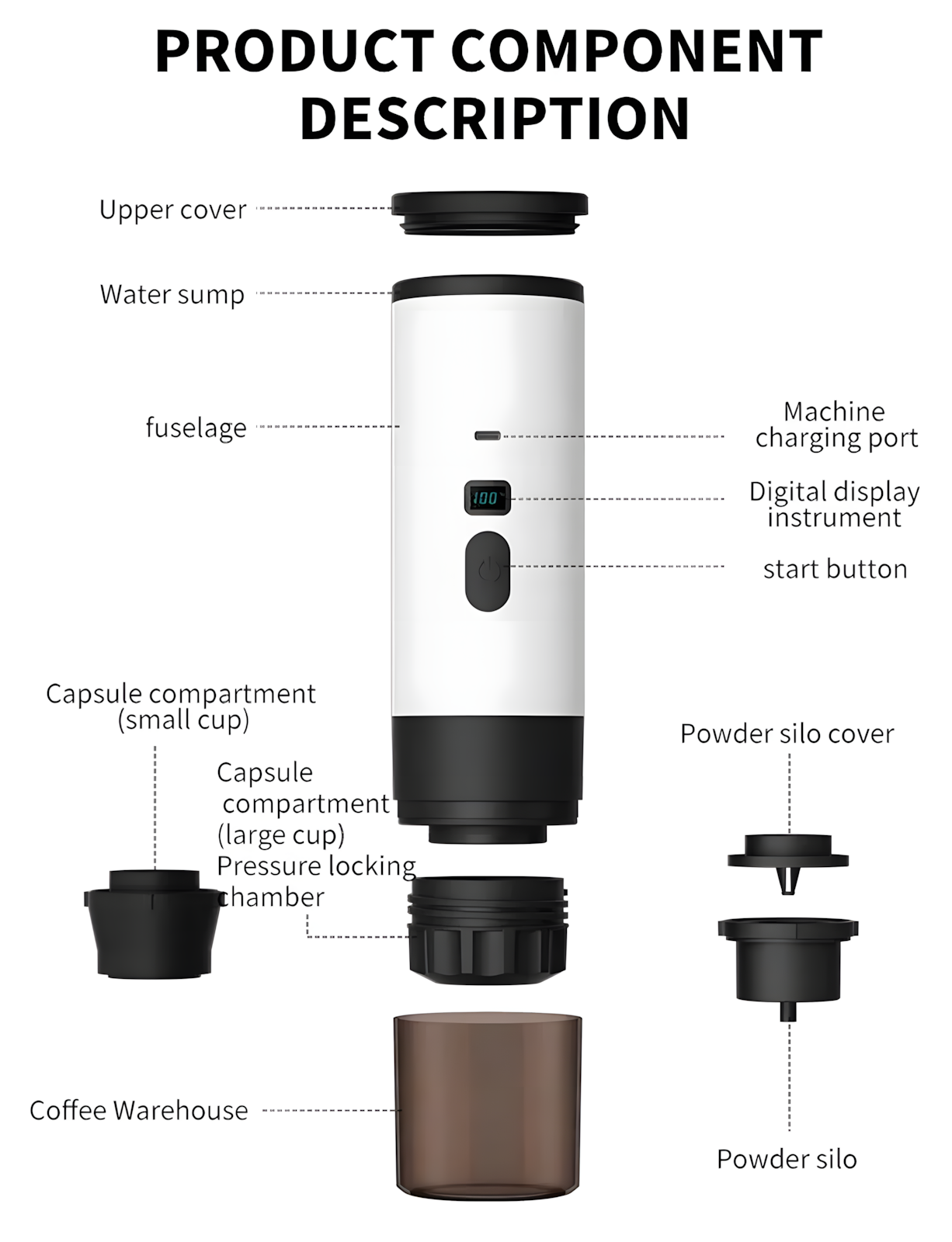 The compact, lightweight design fits easily into a backpack side pocket or a small bag without taking up space, blending seamlessly into your daily life. Brew rich, hot coffee instantly, with every cup fresh and full of flavor for a free and enjoyable coffee experience.